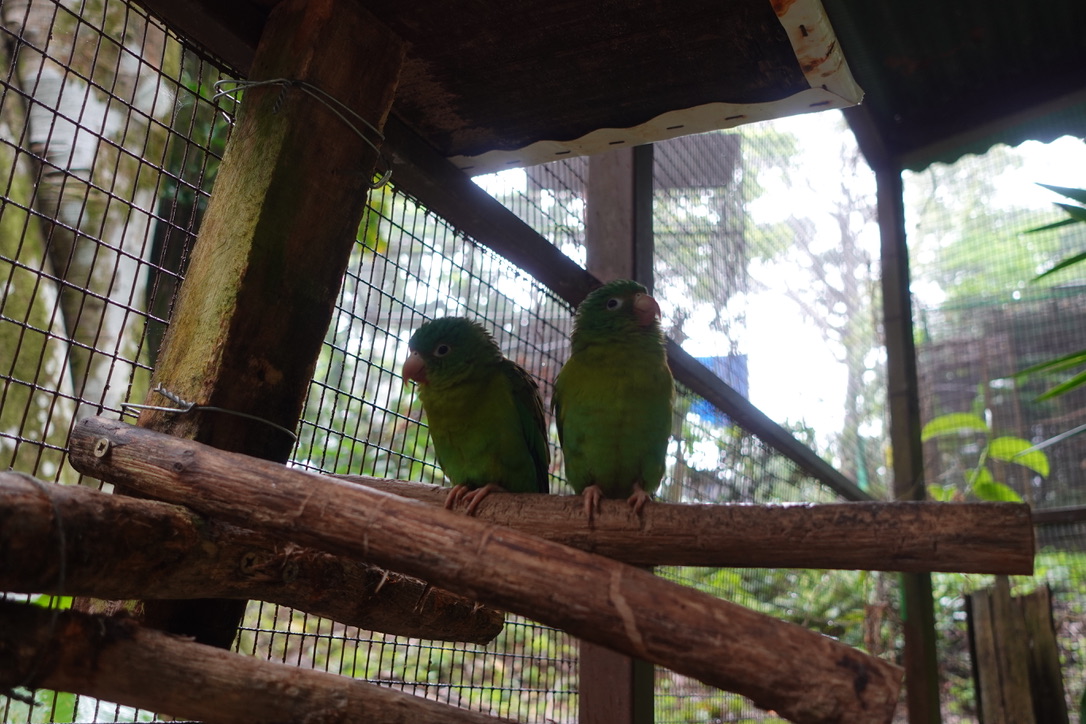 Story: I, like all of my friends who live here in Alturas, was kept as an illegal pet. Many of my kind are frequently captured in the wild to be kept as pets. We are the most common bird to be confiscated from the illegal pet trade in Costa Rica. Maybe this is due to our small size, but what people don't realize, is that we don't do well in captivity. We are very prone to stress and hide our symptoms well.